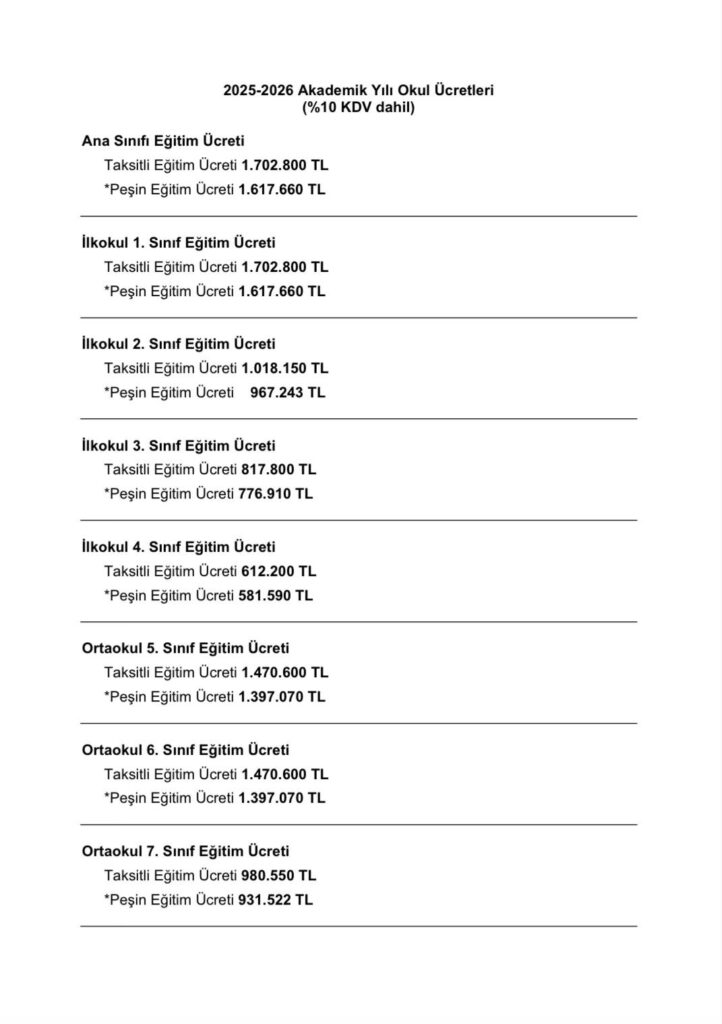 İstanbul Tuzla’da yer alan Koç Okulları’nın 2025-2026 senesi fiyatları belli oldu.